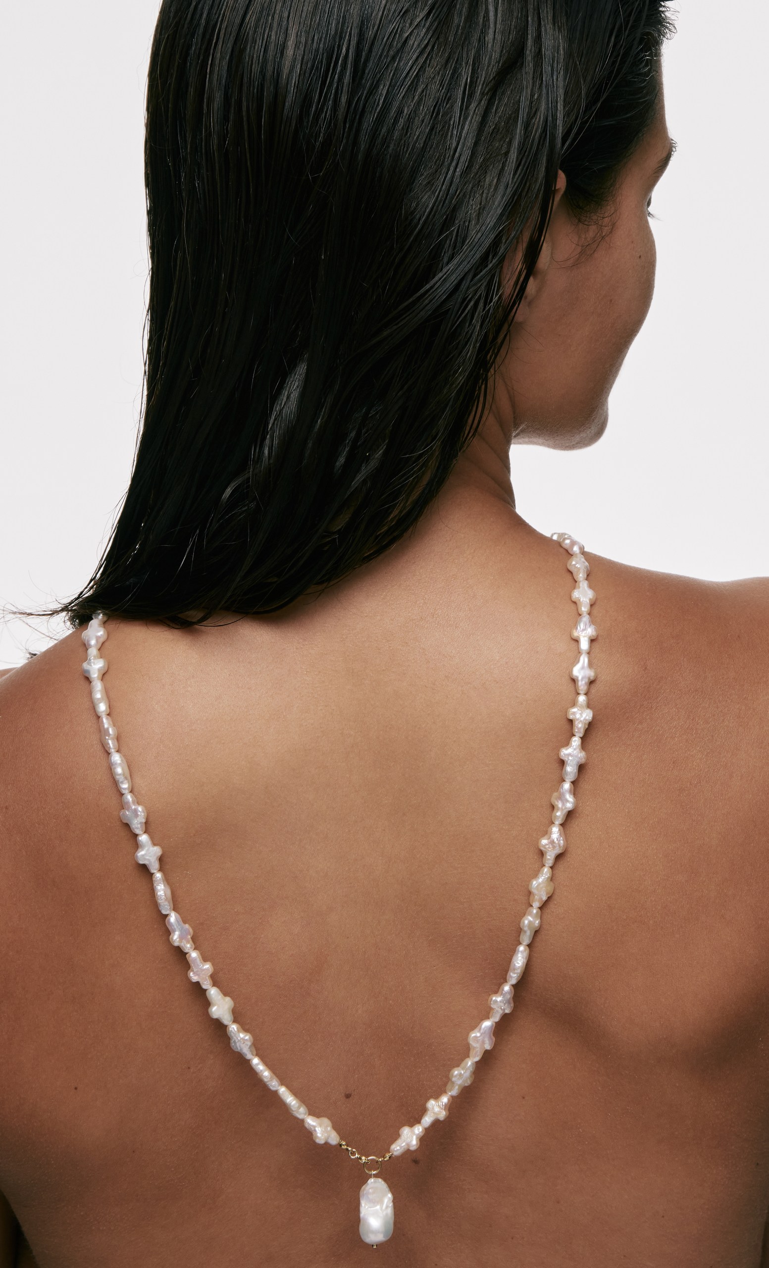 Classic yet unexpected, the Like a Virgin necklace layers smooth freshwater pearls with a bold baroque pearl pendant,